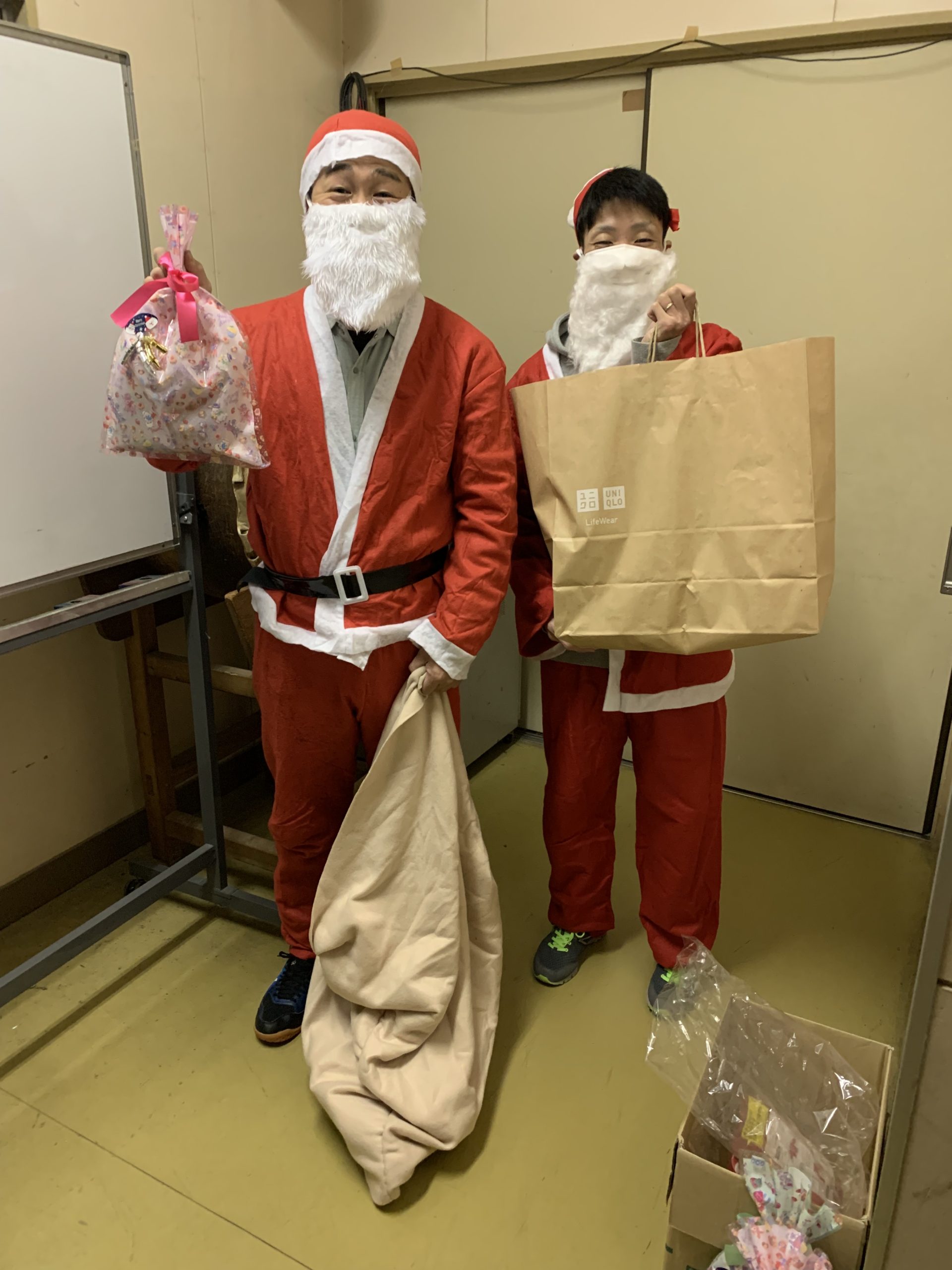 先週のクリスマスイブの日 杉田小学校の体育館にサンタが二人現れました。
